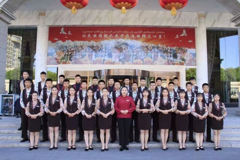 17级高星级饭店运营与管理实习生在新疆昆仑宾馆实习合影留言