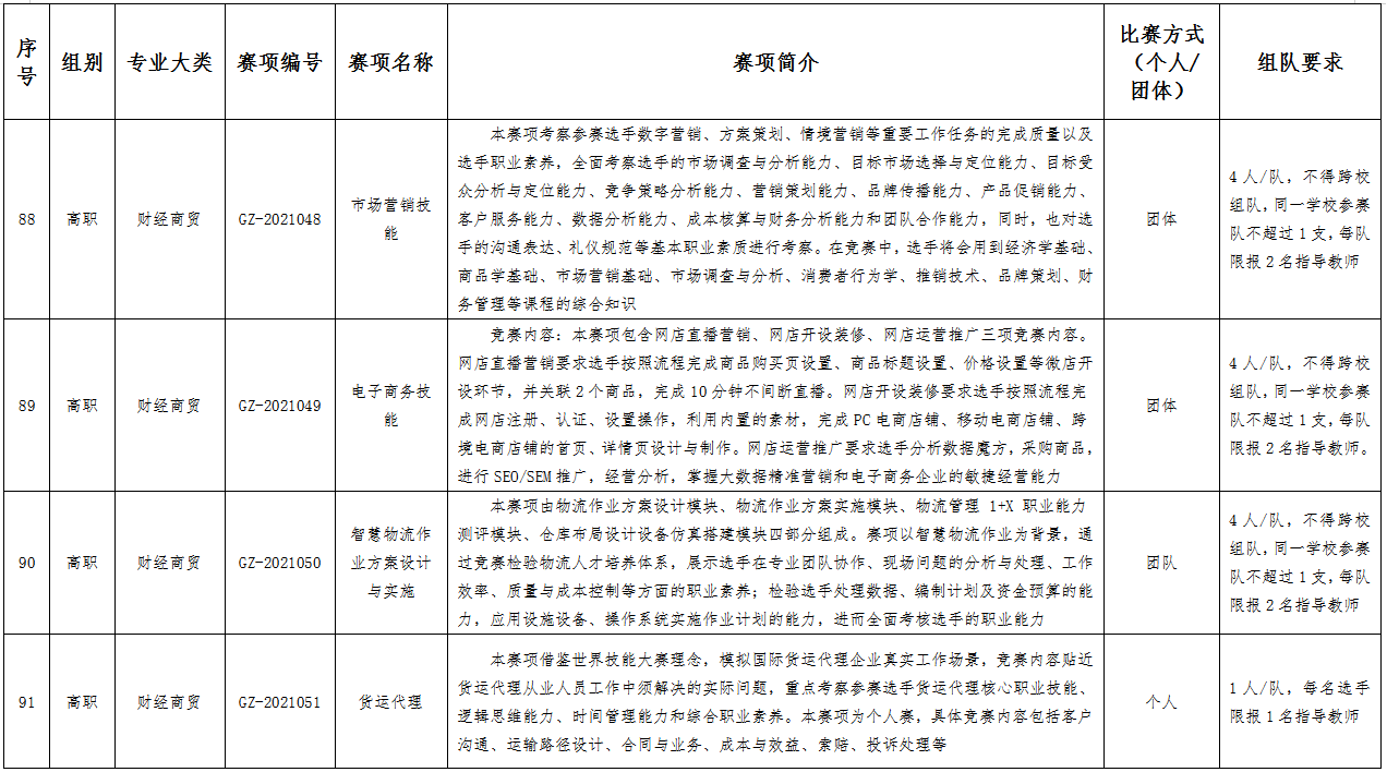 九、赛项简介(见附表)