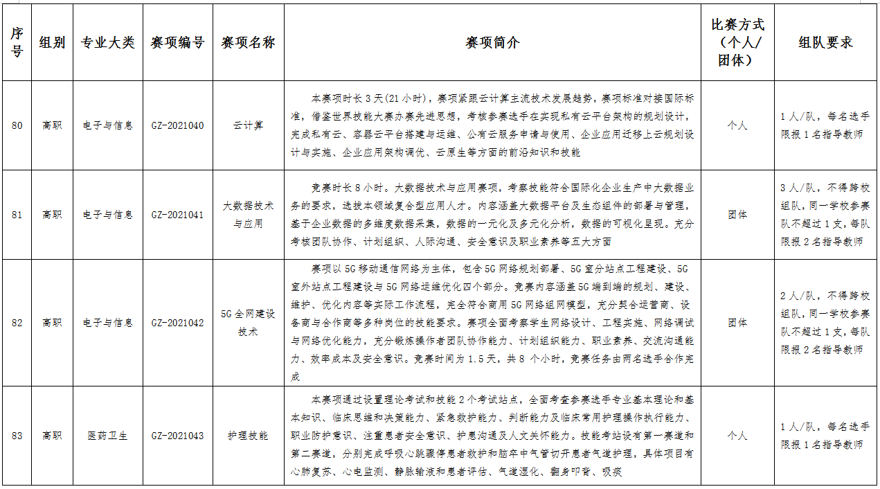 一、大赛名称:2021年全国职业院校技能大赛