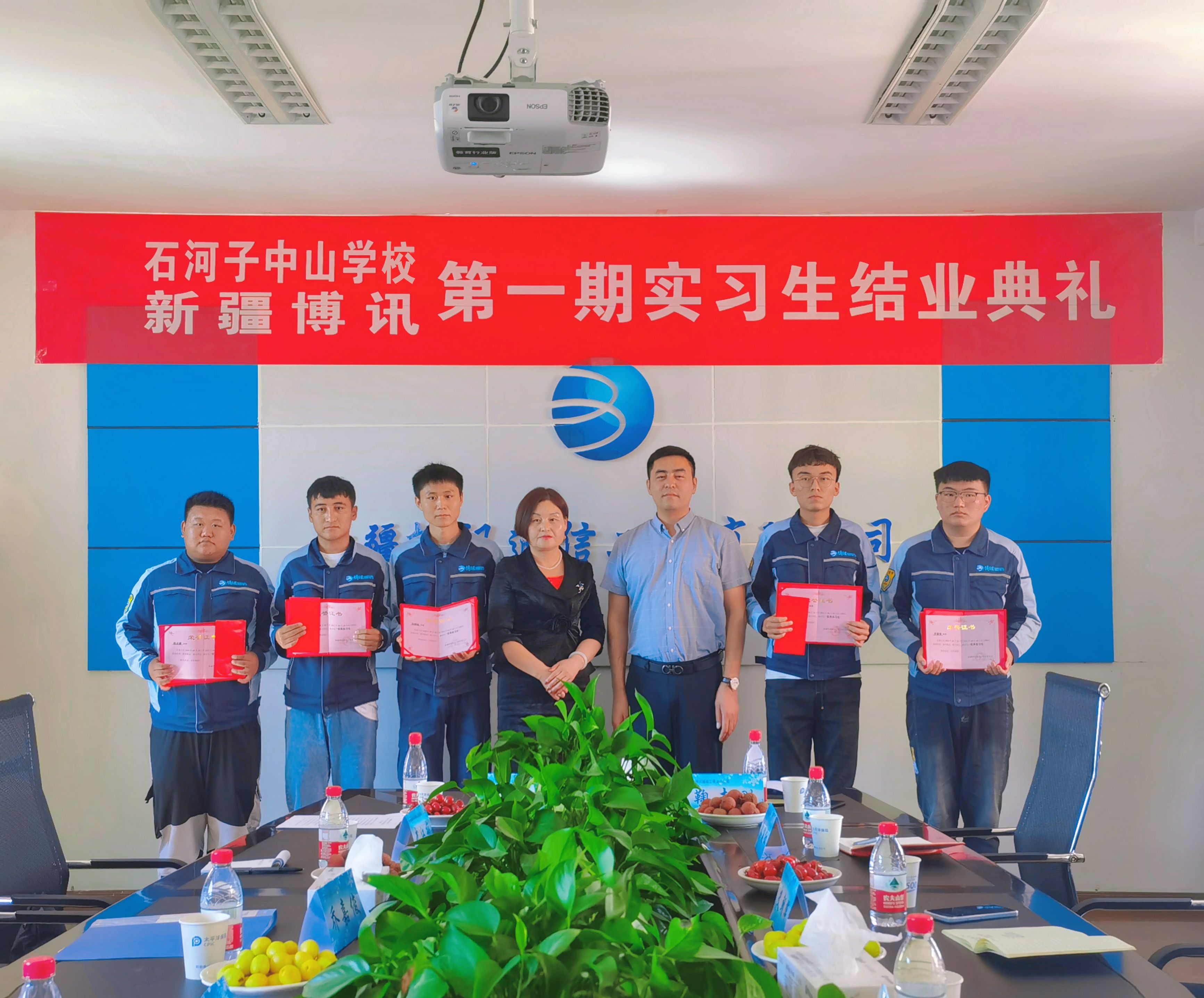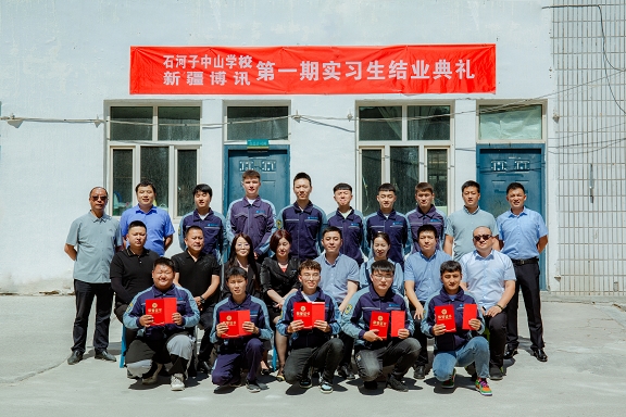 欢送会上,实习生们与指导师傅们欢聚一堂,一起合影留念,共同祝福石河子中山学校和新疆博讯公司的明天会更好。