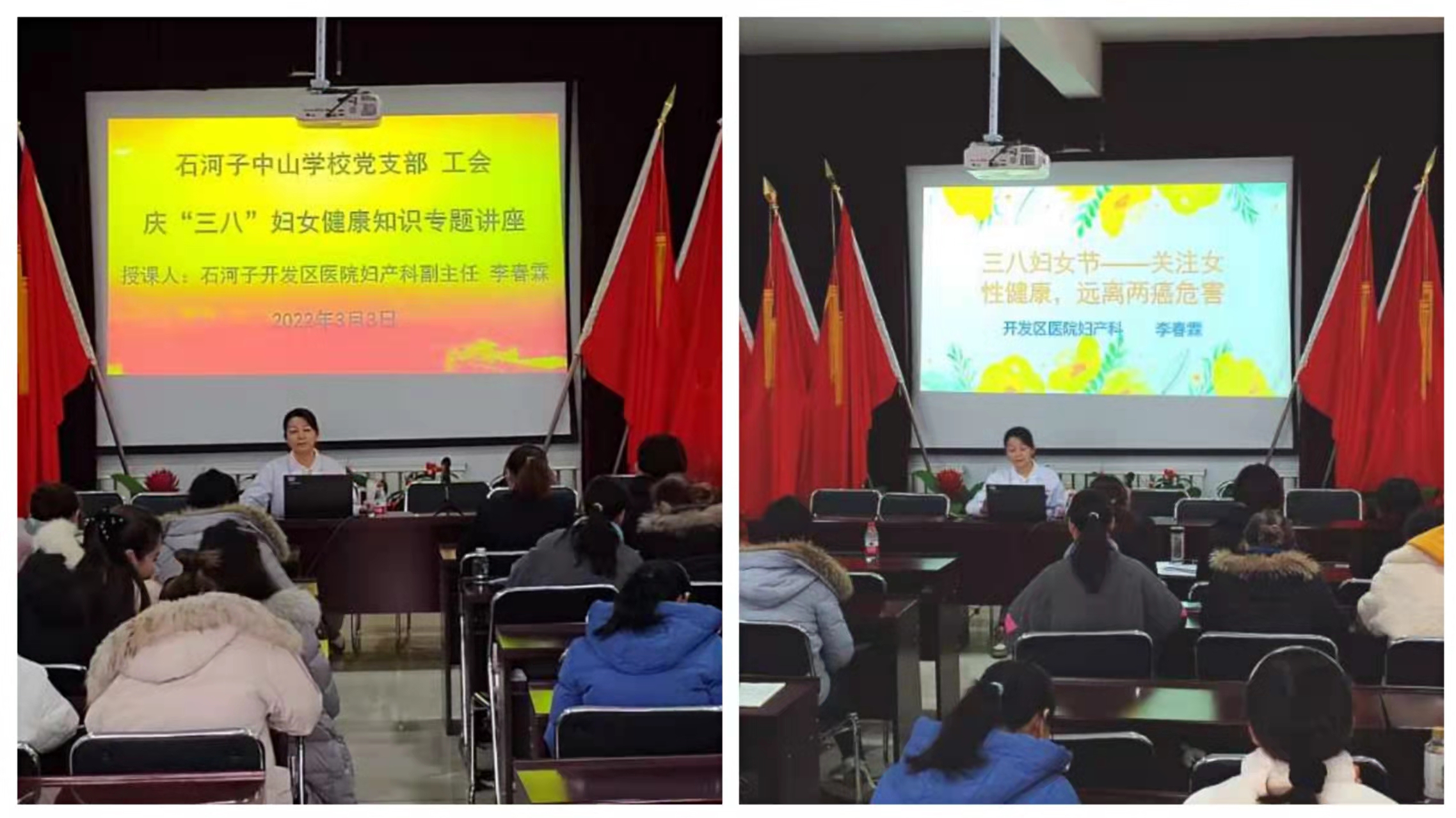 (通讯员冯隽英 赵洪报道 )值此第112个“三八”国际妇女节来临之际,为深入实施“巾帼健康行动”,增强妇女健康意识,提高妇女乳腺癌和宫颈癌的早诊早治率,根据八师石河子市教育局和开发区工会工作委员会《关于开展2022年“三八”国际妇女节纪念活动的通知》精神和具体要求, 3月3日下午,由石河子中山中等职业技术学校党支部、工会共同举办的《“庆三▪八”妇女健康知识讲座》在石河子中山中等职业技术学校党群活动中心举行,全校60多名女教职工聆听了《讲座》。