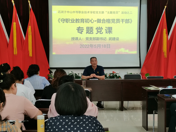 该校党支部副书记、校长武建设以“守职业教育初心 做合格党员干部”为题,围绕习近平总书记对党员干部的要求,即一个信仰、两个加强、三严三实、四有四铁四种人、五条标准等方面展开,语重心长地讲述怎样才能成长为好干部,为参会人员上了一堂生动务实的党课,令人回味无穷。