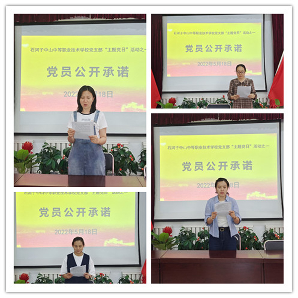 6位党员代表依次上台,向全体党员宣读承诺,表示要提高政治意识,树立党员形象,以实际行动诠释共产党员“平常时候看得出出来、关键时刻站得出来、危机关头豁得出来”的优良作风,并自觉接受群众监督。与会人员认真听、用心记,纷纷表示要做好本职工作,做到在教育观念上领先、在组织生活上当先、在教书育人上争先、在关心学生上率先。