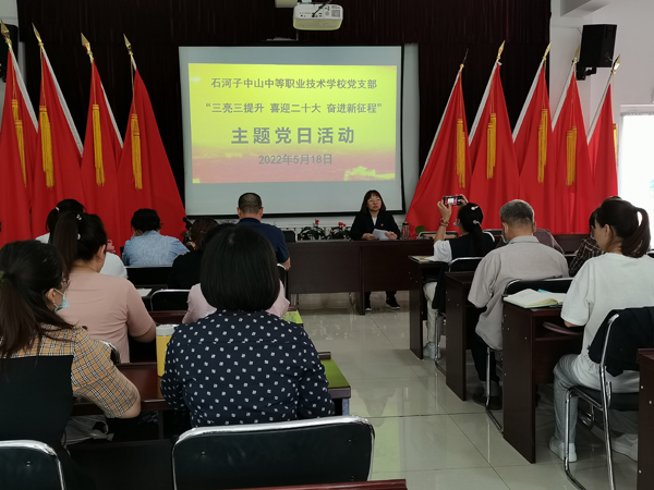 为认真贯彻落实党的十九届六中全会精神,深化党史学习教育成果,强化党性锤炼,引领学校党员坚守初心、勇担使命、切实发挥模范带头作用,5月18日,石河子中山中等职业技术学校党支部组织开展了“三亮三提升 喜迎二十大 奋进新征程”主题党日活动。学校全体党员、预备党员、入党积极分子及中层以上干部参加了本次活动。