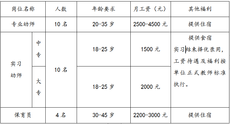 本园因发展需要,面向社会公开招聘,具体职位及福利待遇如下(有特长、丰富工作经验者优先):