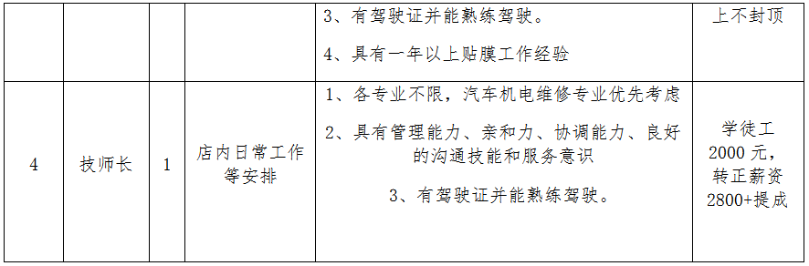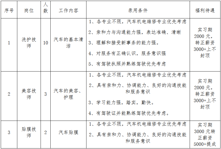 现公司需招募以下岗位人员的实习生,表现优异的实习生将有机会作为公司储备技师长进行定向培养,望广大学子能够积极踊跃前来应聘。